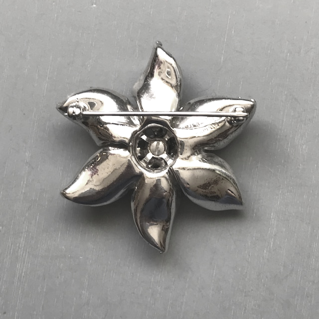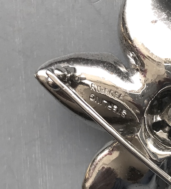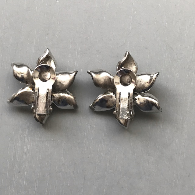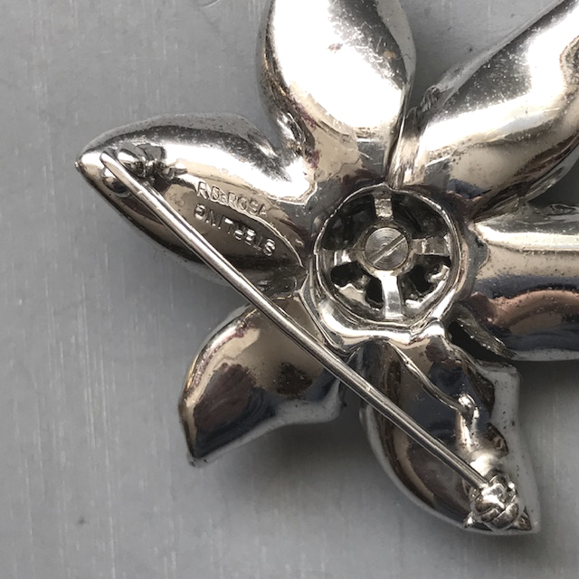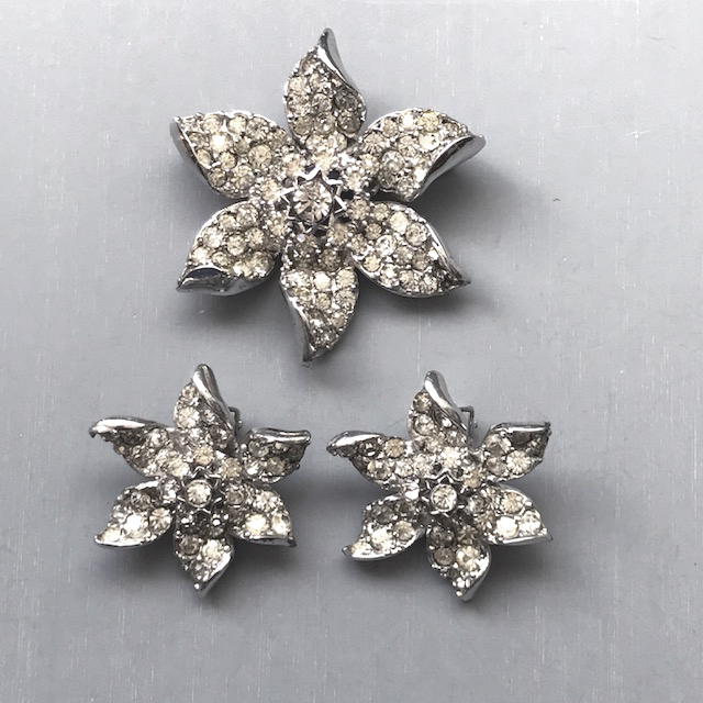 DEROSA sparkling clear rhinestones flower brooch and earrings set in sterling silverProduct #42262 All items in excellent vintage condition unless otherwise noted.