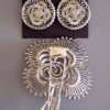 DeROSA sterling silver and clear rhinestones fur clip and earrings, 1947