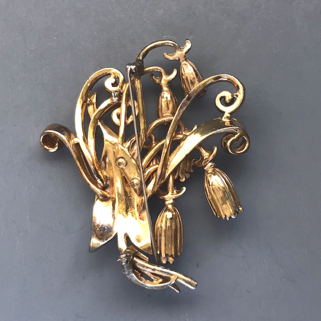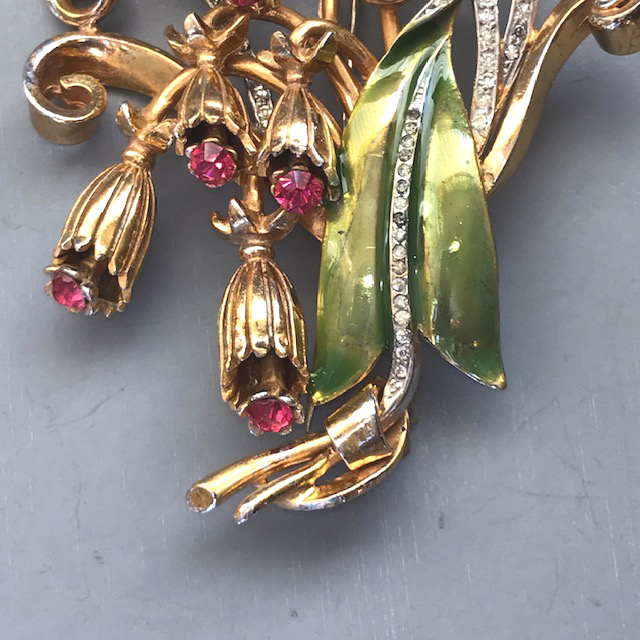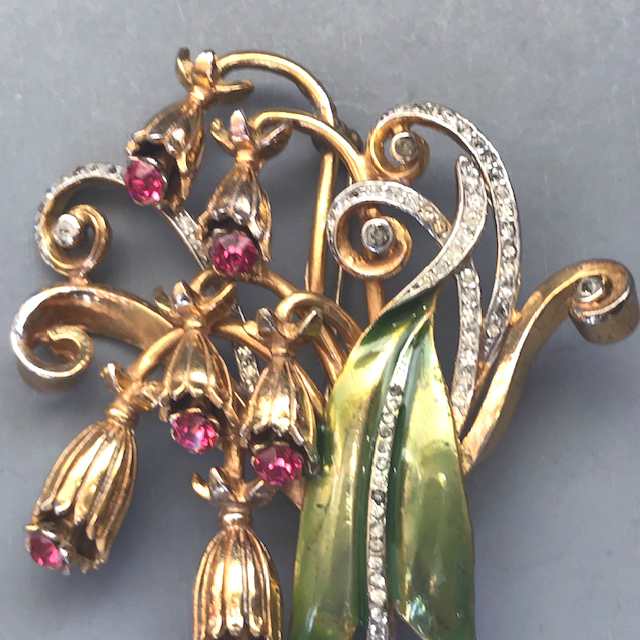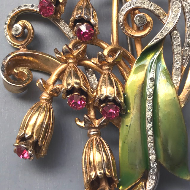 DEROSA style flower brooch with pink rhinestone flower centers and clear rhinestone accents, intertwined designProduct #42697 All items in excellent vintage condition unless otherwise noted.