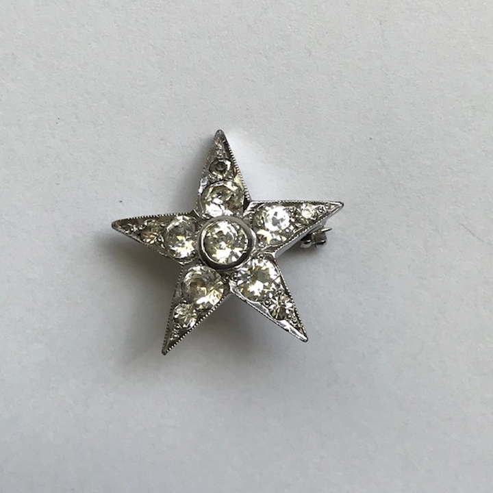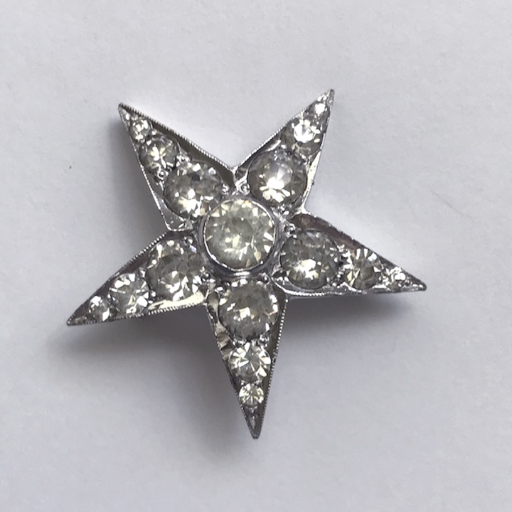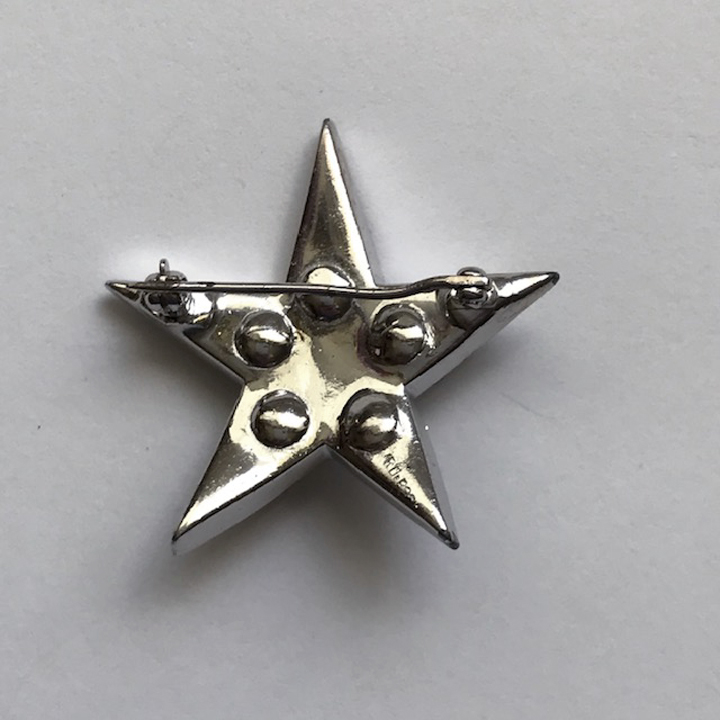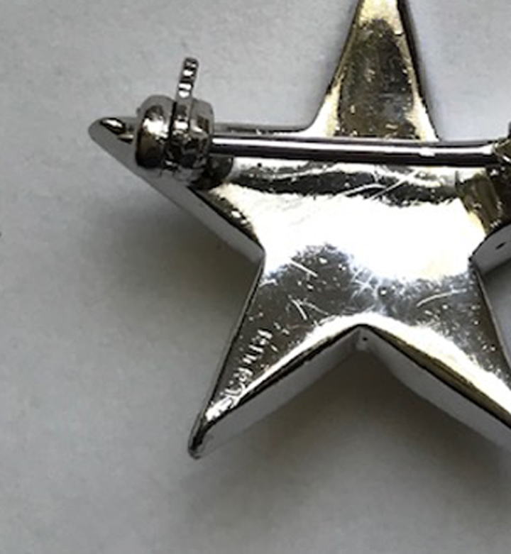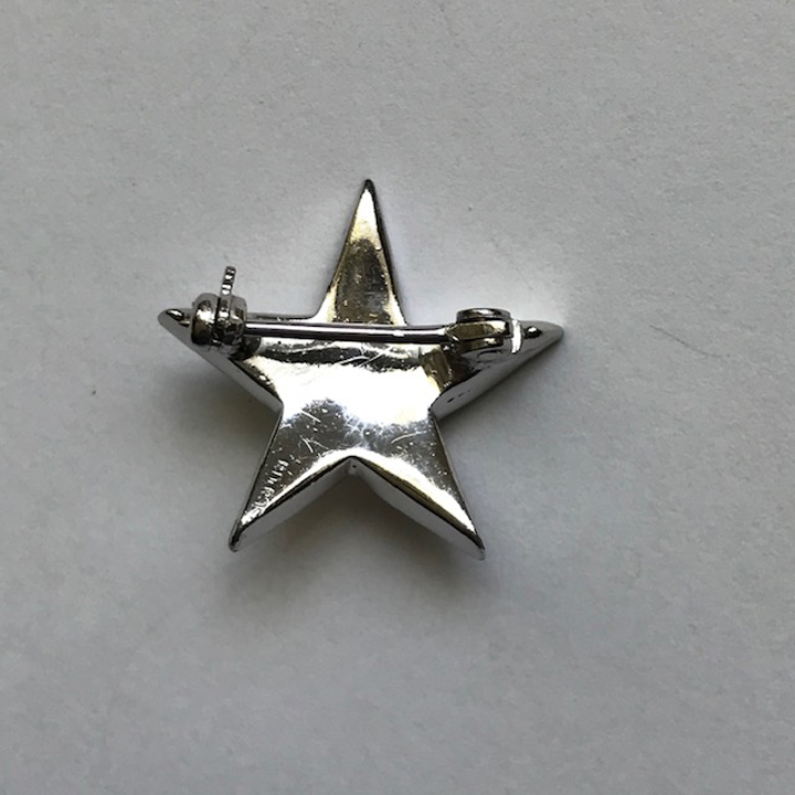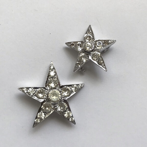 DescriptionDEROSA two twinkling clear rhinestone dainty star pins, a set of two. One is 1-1/3" and one is 1".