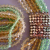 DescriptionEUGENE 8-strand faceted glass yellow, green and caramel beads and rhinestones necklace, wearable length 15-1/2" at the shortest strand, circa 1960.