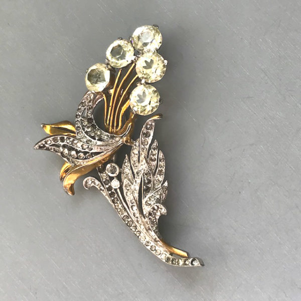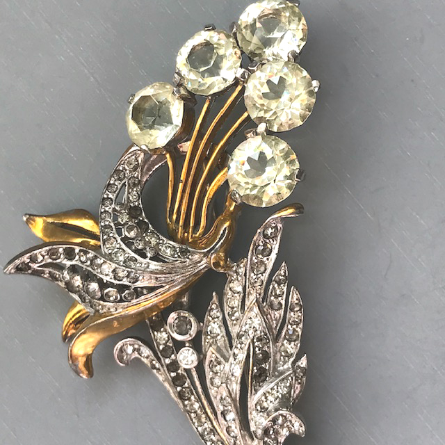 While it has some grayed rhinestones it's still a wonderful stylized bouquet with elements that wind in and around each other. Circa 1940, it's an unusual piece for sure and so far I haven't seen another like it. View View View View Product #Y26172