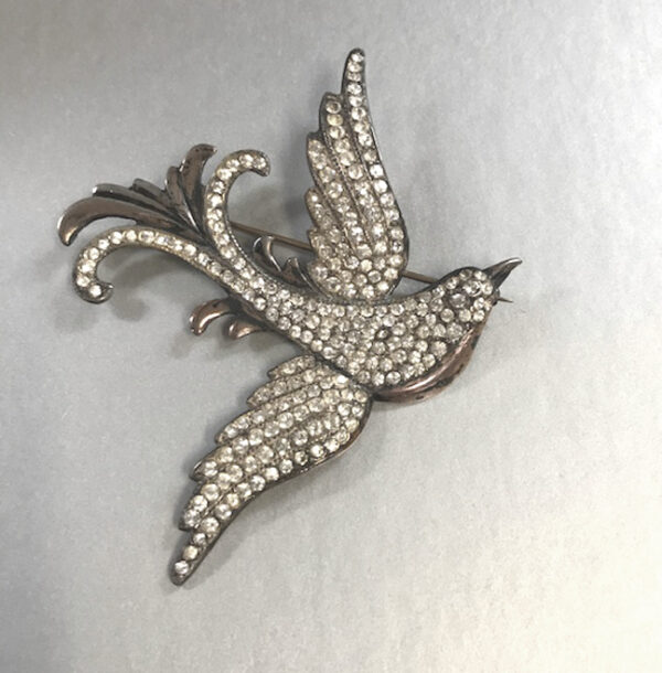 GOLDSTEIN-POLAND bird brooch of sterling silver set with clear rhinestonesView View View All items in excellent vintage condition unless otherwise noted.