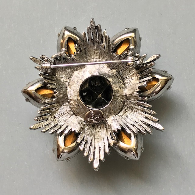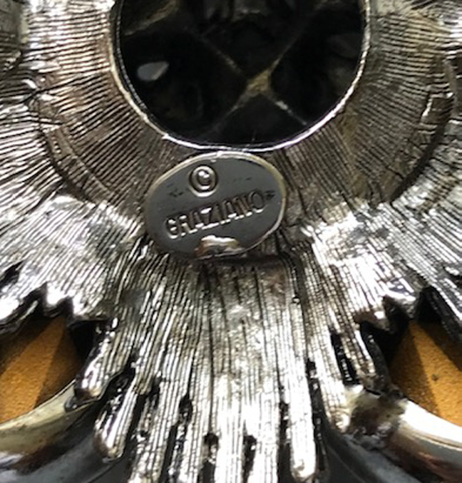 Description GRAZIANO brilliantly clear rhinestone starburst brooch with a silver tone setting, 2-1/3" across. This brooch is sparkling and gorgeous! View View View Product #41950