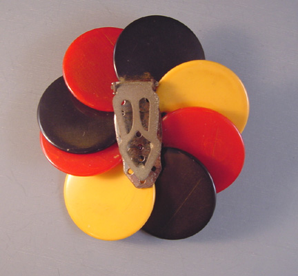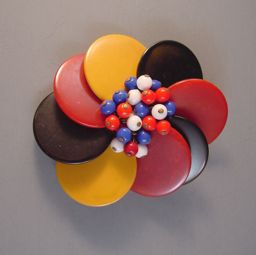 MIRIAM HASKELL by Frank Hess bakelite red, butterscotch and dark blue clipView Product #H36398 All items in excellent vintage condition unless otherwise noted.