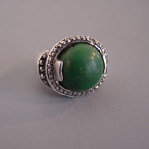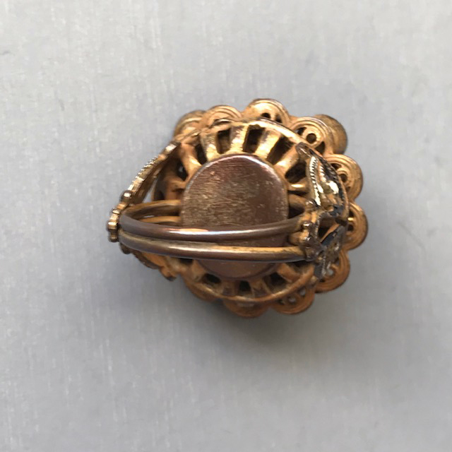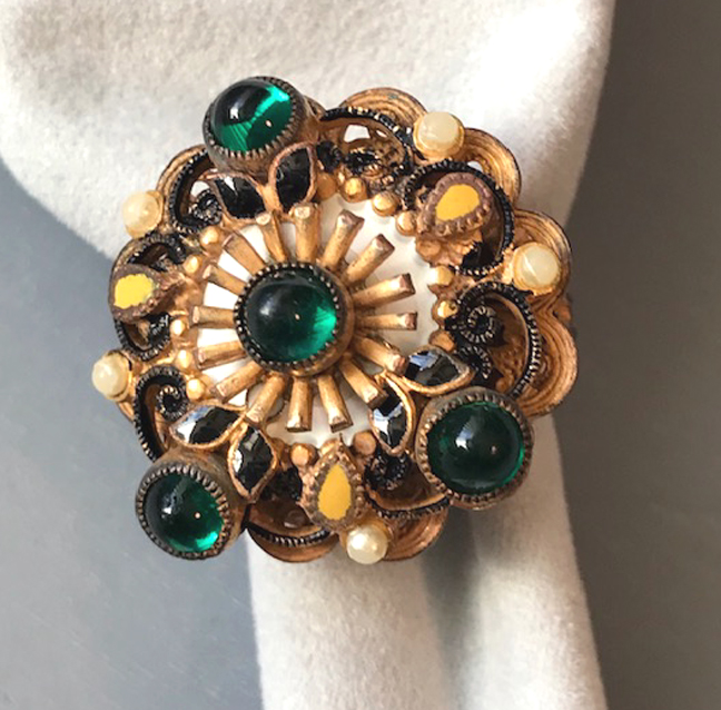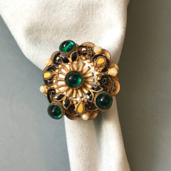 HOBE Austro-Hungarian revival ring with emerald green glass cabochons, tiny glass pearls and enamelingProduct #42008 All items in excellent vintage condition unless otherwise noted.