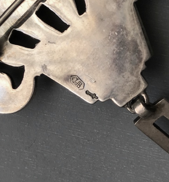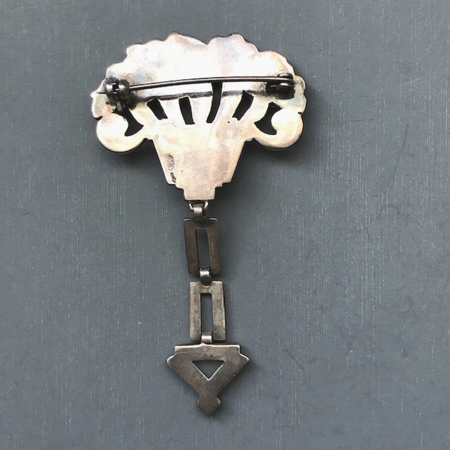 According to Ginger Moro’s wonderful book, "European Designer Jewelry" on page 233, Cohen found vintage molded glass elements in Paris and combined them with modern silver, onyx, marcasites, and chrysoprase to fashion his Deco inspired jewelry. According to Cohen, he was also inspired by the Amsterdam School designs from earlier in the 20th Century. View View View View View View View View View View View View View View View View Product #42355