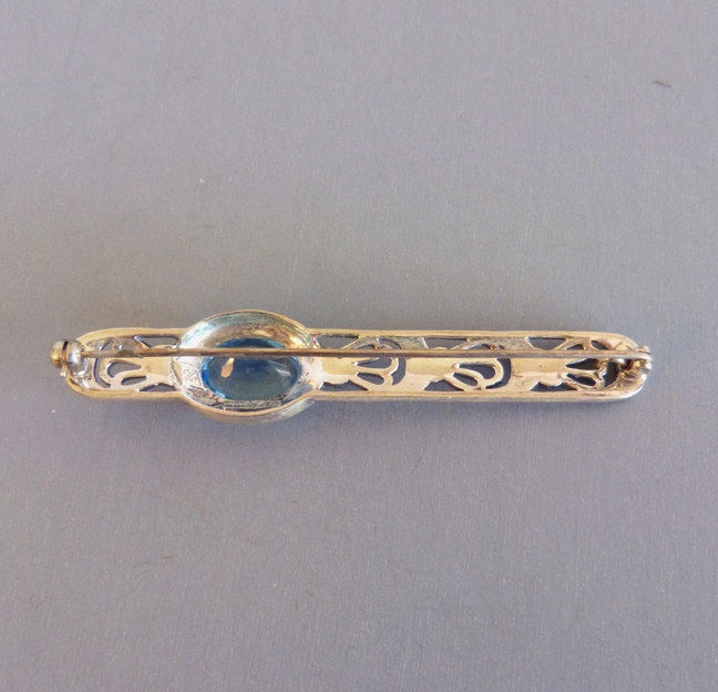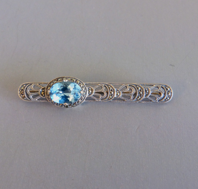 JJ JUDITH JACK sterling and marcasite bar brooch with a lovely unfoiled aqua rhinestoneProduct #66589 All items in excellent vintage condition unless otherwise noted.