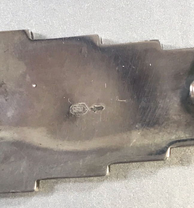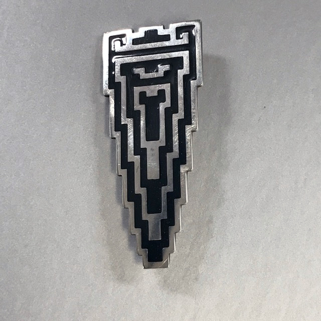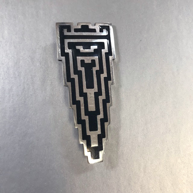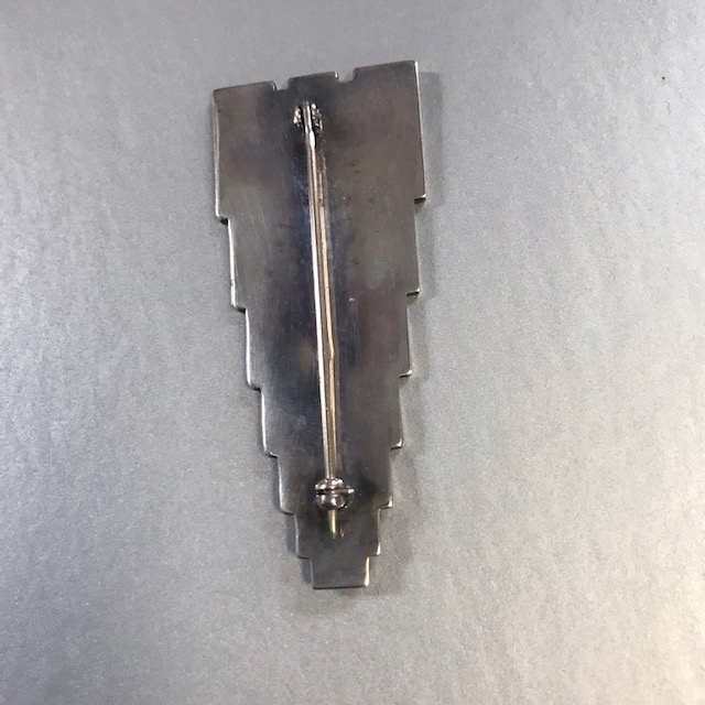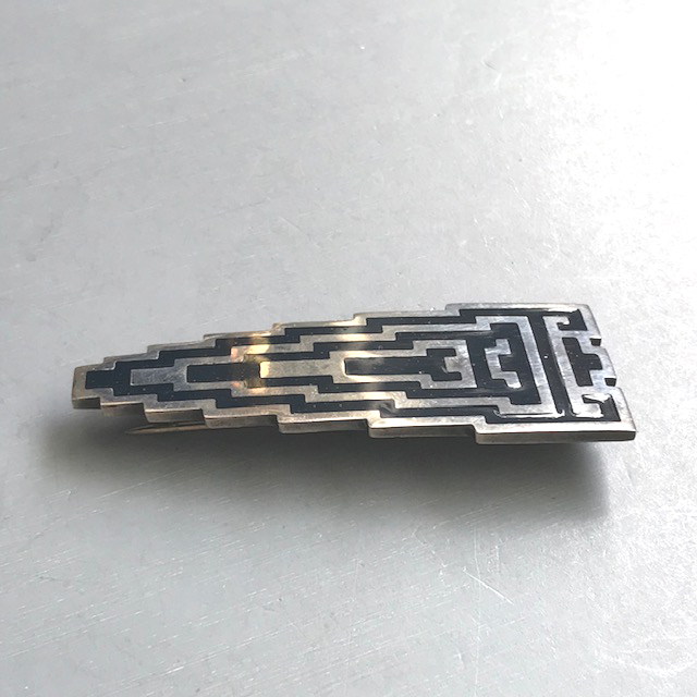 JORGE ALBERTO COHEN Dutch Amsterdam brooch in sterling silver with black enamelAccording to Ginger Moro’s wonderful book, "European Designer Jewelry" on page 233, Cohen was inspired by the Amsterdam School designs from earlier in the 20th Century. I also read that this design was inspired by inspired by a design in a 1920s architectural magazine called De Wendingen. View View View Product #41528 All items in excellent vintage condition unless otherwise noted.