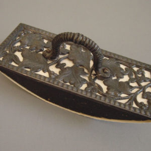 Made by CF Monroe Company in Meriden, Conn, who also made Wavecrest and Nakara glass, circa 1900.  The peach colored lining is frayed, but the glass body is perfect.   The box is breathtaking in every way, and a delight to own and cherish.  View  View  View  View