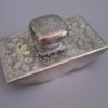 Description ARTS & CRAFTS silver plated desk with foliate designs, set marked with a "KO & Co" in an oval. The set includes a perpetual calendar 3"; rocker ink blotter 4"; pen tray 7-7/8" by 2-1/3"; inkwell 3" by 2-1/3". KO& Co is Kronheimer Oldenbusch Co, New York, NY 1900-1922 as listed in Schiffer's "Silver Encyclopedia". I saw on line that the company closed in 1949, but this set would have been made earlier. View View View View View View View Product #a32868