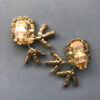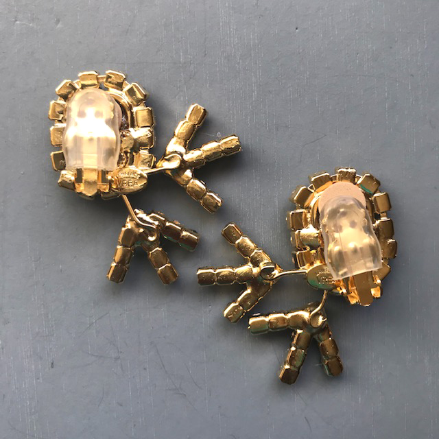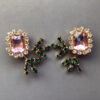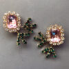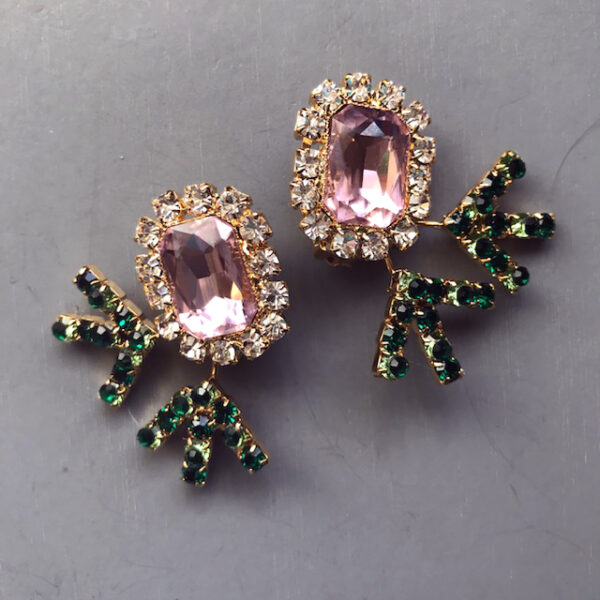 DescriptionLARRY VRBA Christmas holiday earrings with sparkling pink rhinestones, a halo of clear rhinestones and amidst green rhinestone evergreen branches.