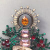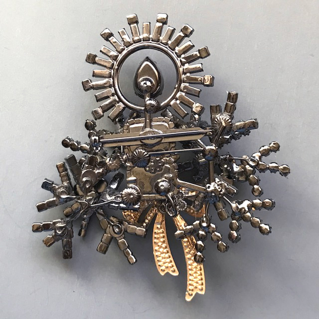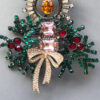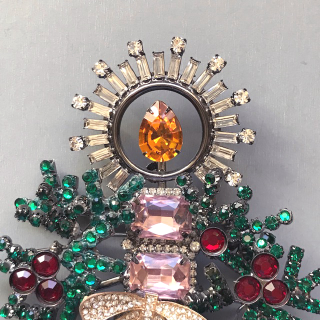 LARRY VRBA festive Christmas candle, holly berries and evergreens brooch. The candle is made of pink rhinestones