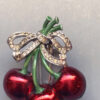 MAZER attributed red and green enameled cherry fur clip, 1942