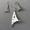 The pendant, which has fascinating knots designs, is 3" by 1-1/3" counting the bail at the top, and the earrings with matching designs are each 1" by 1". The total weight of this set is 0.7 ounces. His jewelry is made from his own carvings. ViewView View View Product #42015