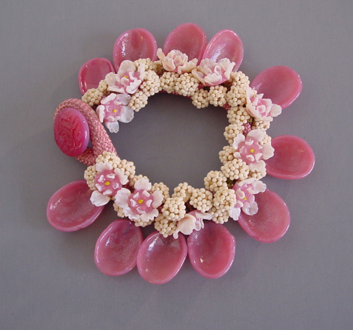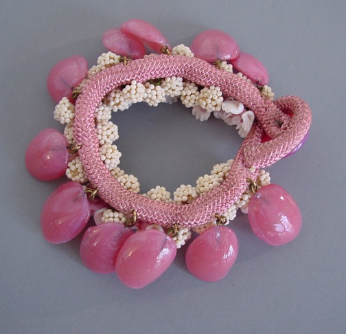 MIRIAM HASKELL rare pink glass flower petals bracelet, button closure