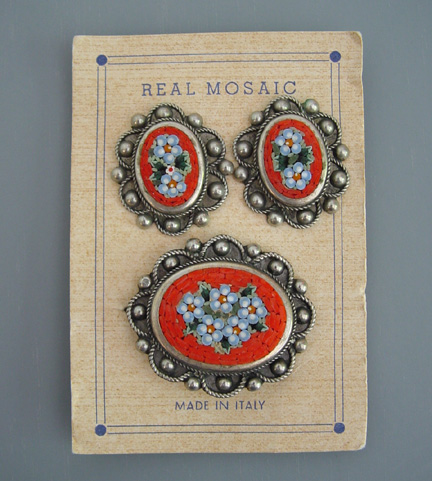 MOSAIC real Italian mosaic brooch and earrings on the original card