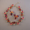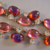 NECKLACE dragon's breath glass cabochons necklace with clear rhinestone accents, spectacular color