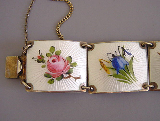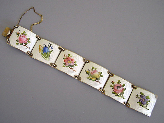 NORWAY sterling enameled flowers bracelet, Finn Jensen, 1950