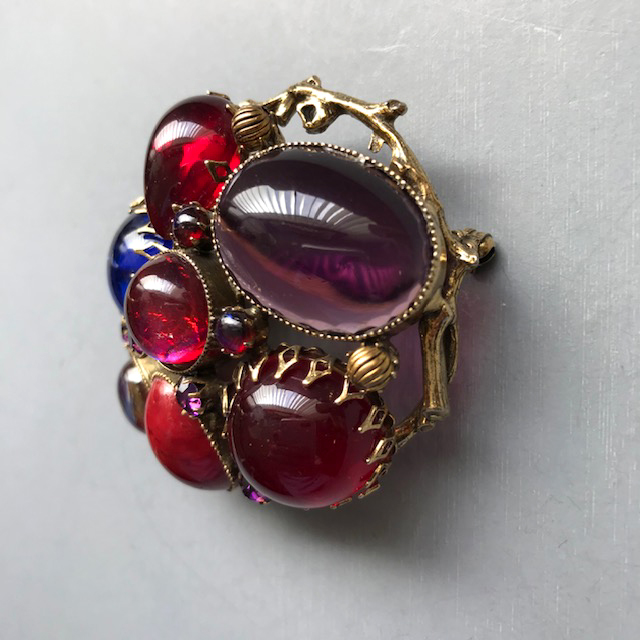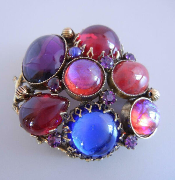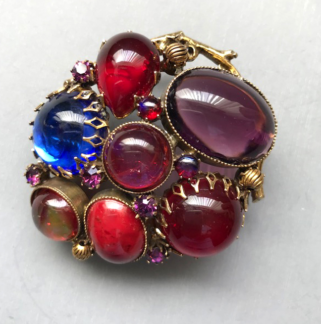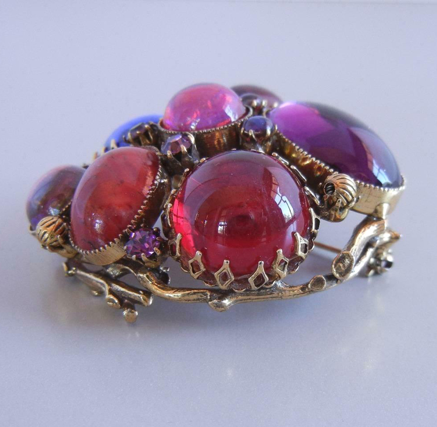 ORIGINAL by ROBERT radiant and unusual brooch with a lovely combination of red, rose, purple and blue cabochons with dragon's breath cabochons, limb settingProduct #40888 All items in excellent vintage condition unless otherwise noted.
