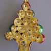 RADKO Christmas tree brooch with colorfully detailed enameled ornaments in gem tone colors, boxed