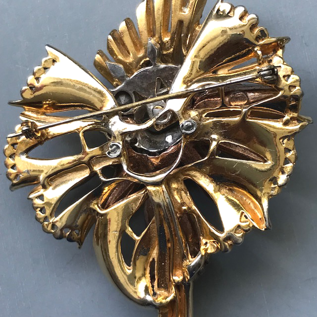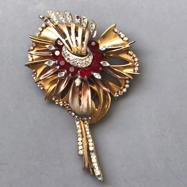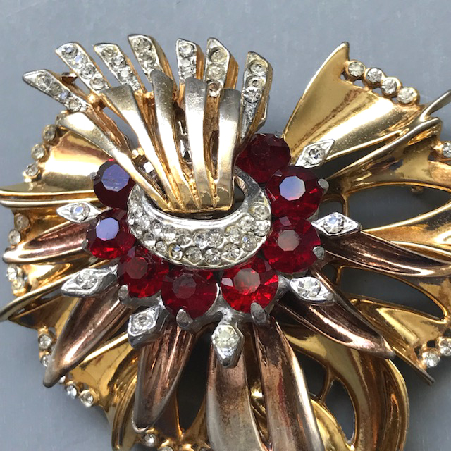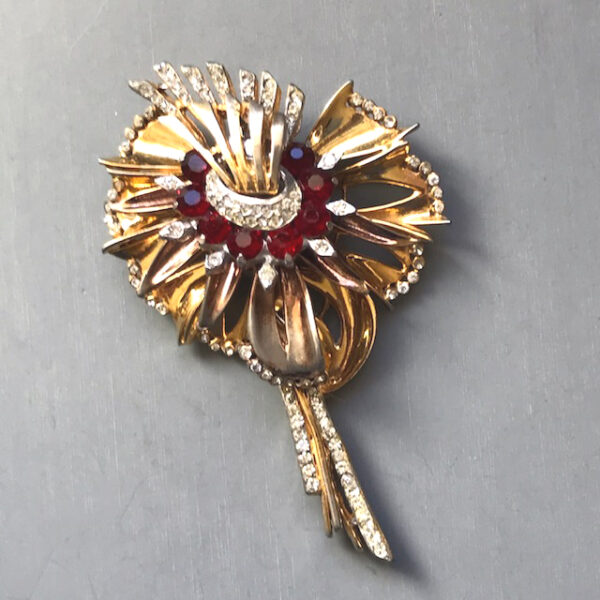 REINAD signed flower brooch with multiple petal layers in rich red and clear rhinestonesWe have had others of this same clip with the DeRosa and Reinad signatures, and also some that were not signed at all. View View View View View Product #42349 All items in excellent vintage condition unless otherwise noted.