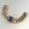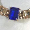 RETRO style bracelet with a brilliant blue rhinestone center set in gold tone metal