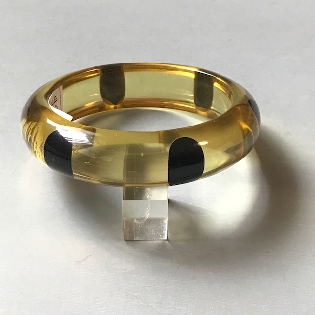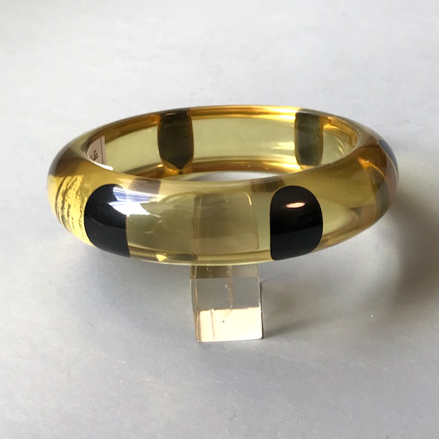 SHULTZ bakelite apple juice bangle with 6 black fingernail dots