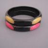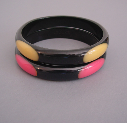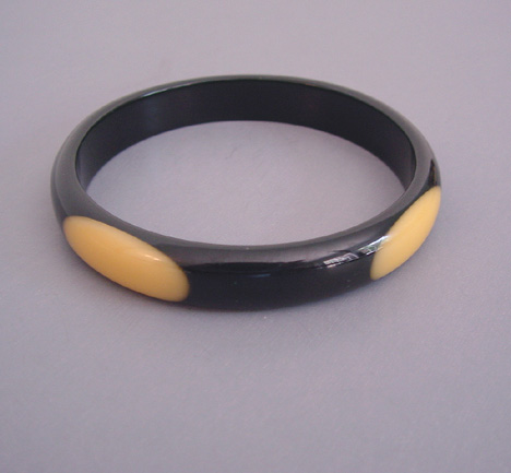SHULTZ bakelite black spacer bangle with 4 oval butter yellow dots