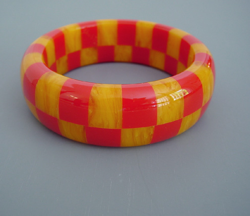 SHULTZ bakelite red, citrus yellow 2-row check bangleProduct #B63463 All items in excellent vintage condition unless otherwise noted.
