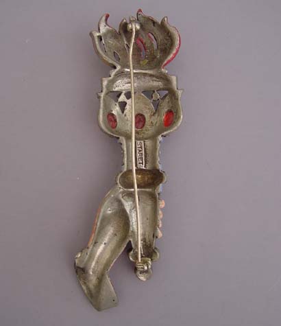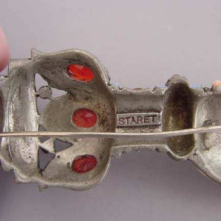 This is the genuine brooch and NOT the later Barnes reproduction, and I have owned both so I know the difference. Staret was based in Chicago, Illinois, and they only made jewelry for a brief period from about 1940-1947. This wonderful brooch is seen in Christie Romero's "Warman's Jewelry", 2nd Ed, page 191, in Brunialti's "Tribute to America" on page 55 and in Brunialti's "American Costume Jewelry, Art & Industry" on page 242. View View Product #16458