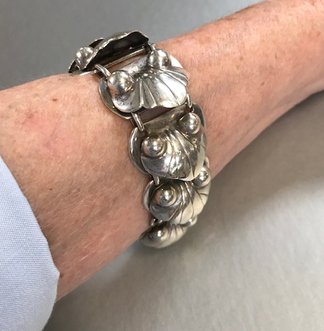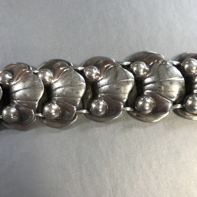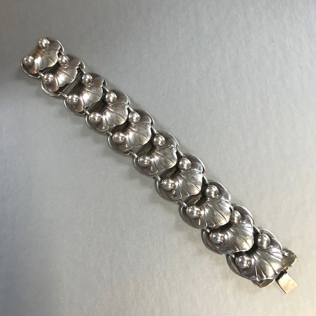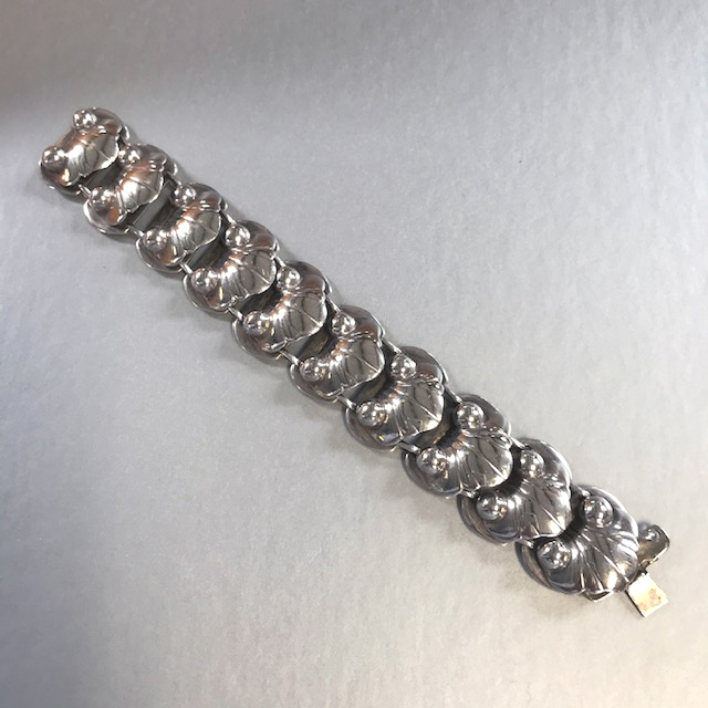 STERLING silver bracelet with interlocking clam shell shaped links and round balls in a smooth comfortable braceletProduct #37799 All items in excellent vintage condition unless otherwise noted.