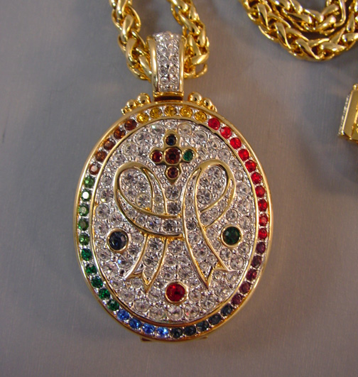 SWAROVSKI 1990s colorful locket pendant with brilliant rainbow of Swarovski crystal rhinestones