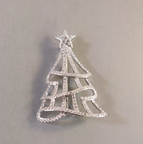 SWAROVSKI 2011 Christmas tree brooch with open airy limbs set with brilliant clear rhinestone crystals, box and pouchThis piece can be seen in the book, "Christmas Tree Pins" by Kathy Flood on page 275. We have abundant information about Swarovski jewelry on our Swarovski reference page and more on our reference page about Swarovski Christmas jewelry as well as lots of photos on both pages. View View Product #39144 All items in excellent vintage condition unless otherwise noted.