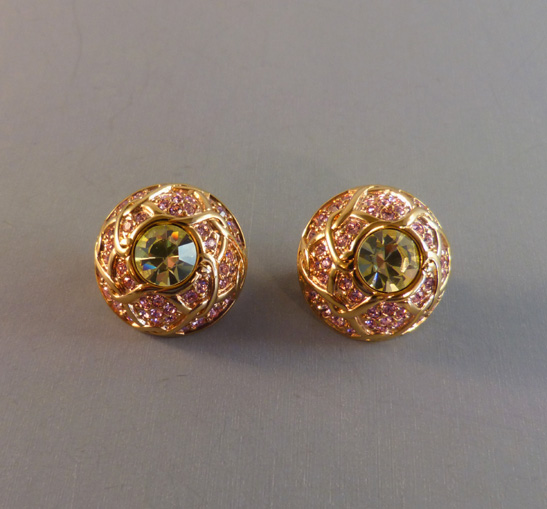 SWAROVSKI Jeweler's Collection pink and jonquil yellow earringsThese were made for Nordstrom in the late 1990s, and they are in excellent condition as thought they were never worn. The clip backs are padded and so they are comfortable to wear, and they have the Swan logo and copyright marks on the back. We have abundant information about Swarovski jewelry on our Swarovski reference page and more on our reference page about Swarovski Christmas jewelry as well as lots of photos on both pages. View View Product #K39005 All items in excellent vintage condition unless otherwise noted.