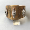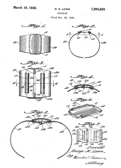 TORCH BRACELET gold plated metal hinged bangle bracelet with clear rhinestone and silver torches applied on three sidesGK Lowe applied for this patent in November of 1934 and I imagine this bracelet was made about that same time. Miriam Haskell also used this same base bangle in some of her bracelets, and this is one of them HERE, shown for reference only. This would also have been used by other jewelry companies, so I am not saying that I think it is by Haskell, it isn't. It is a comfortable and versatile style, and a very unusual piece. View View View View View View View View View View View View Product #42348 All items in excellent vintage condition unless otherwise noted.