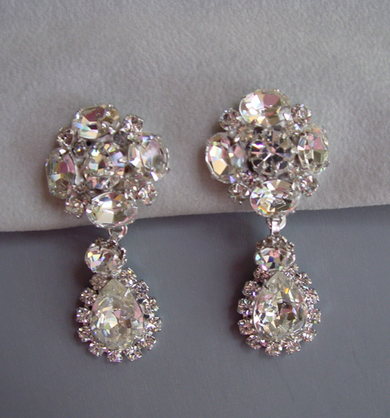 VENDOME sparkling clear rhinestone dangling pendant earrings set in silver toneProduct #38720 All items in excellent vintage condition unless otherwise noted.