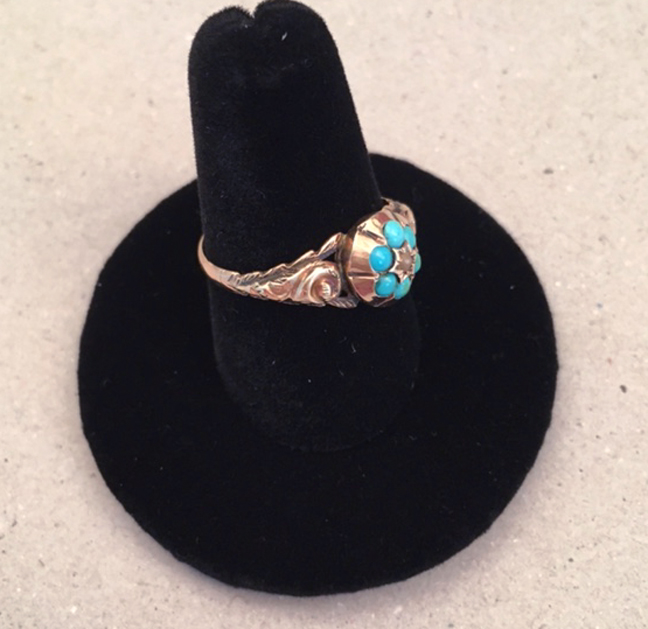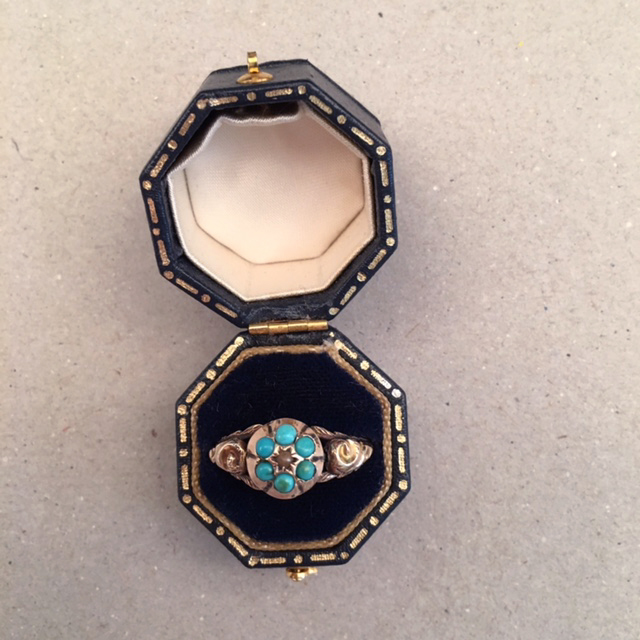 VICTORIAN antique turquoise and pearl 9 ct yellow gold and turquoise ring