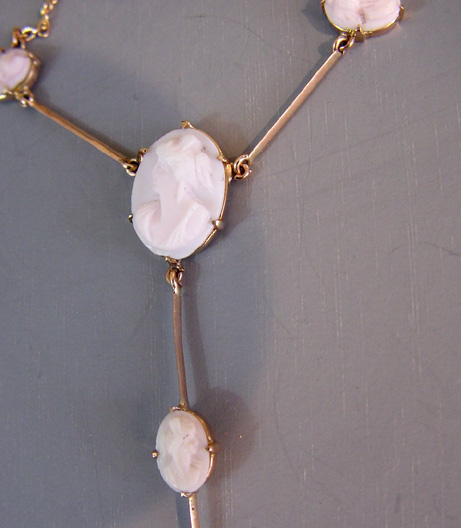 VICTORIAN angel skin sea shell 9 karat gold cameos necklaceProduct #V36603 All items in excellent vintage condition unless otherwise noted.