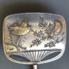 VICTORIAN rare antique birds locket brooch in sterling silver with and rose and yellow gold birds sitting on etched flowered branches