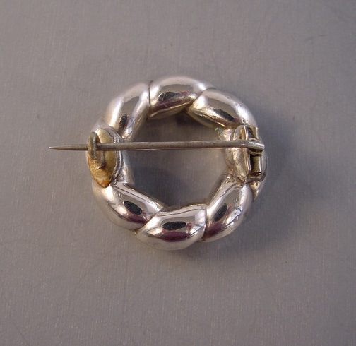 Description VICTORIAN antique puffy hollow sterling silver circle brooch with etched rose and leaf designs, made in the 1880s, 1-3/16" across and weighs about .16 ounces. View Product #37958