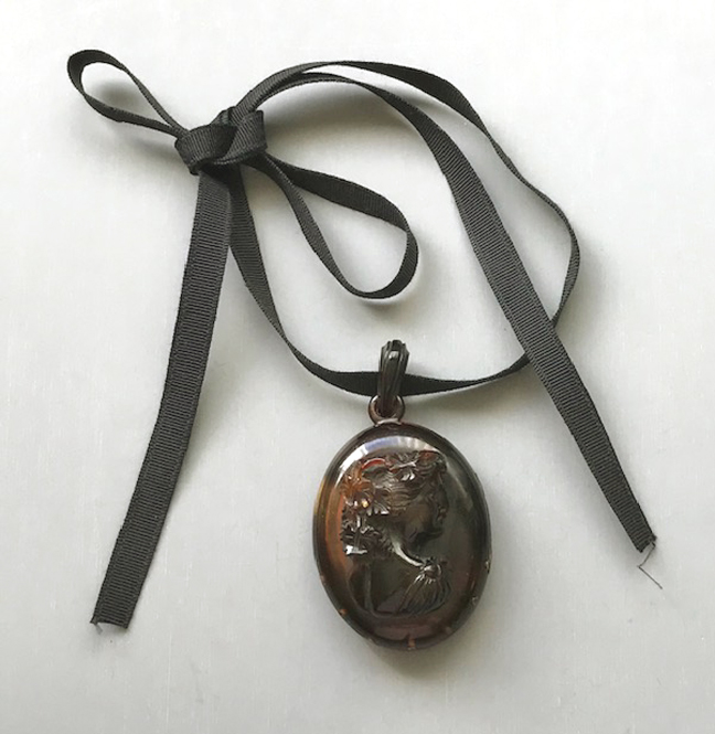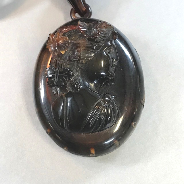 VICTORIAN antique tortoise shell colored hinged locket with a raised cameo of a lovely lady on the top, two photos insideView View View View View View View View View View Product #40936 All items in excellent vintage condition unless otherwise noted.