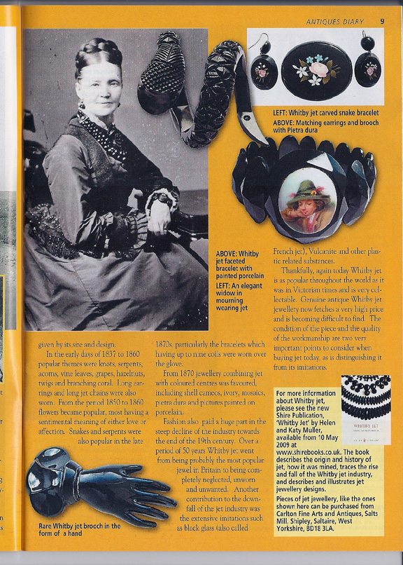 The Muller's books "Jet Jewellery & Ornaments" and "Whitby Jet" are the best books written on the subject.