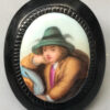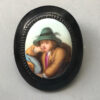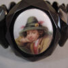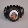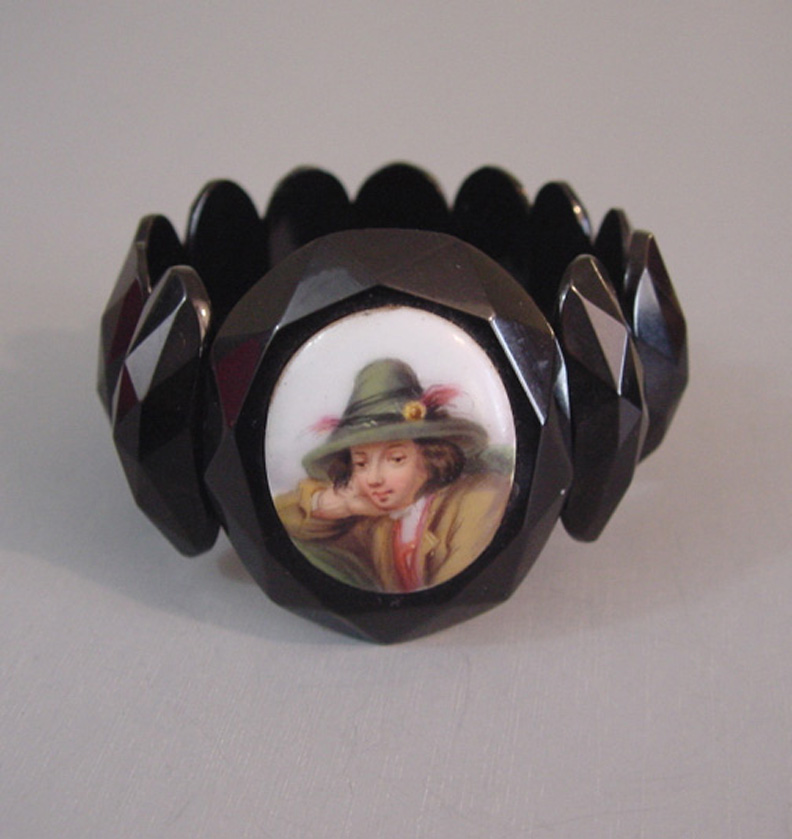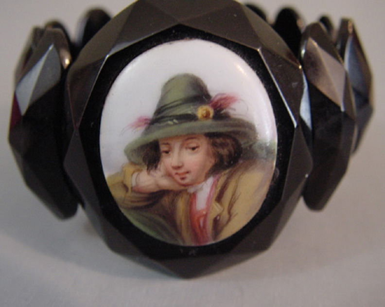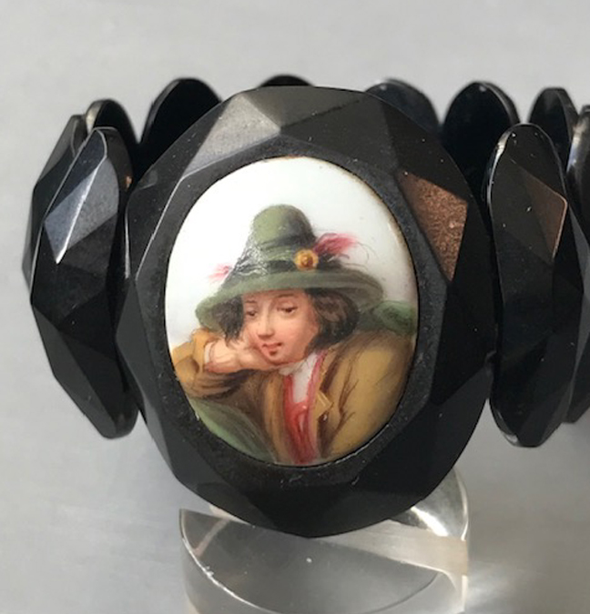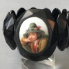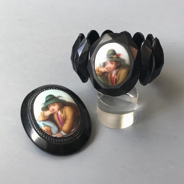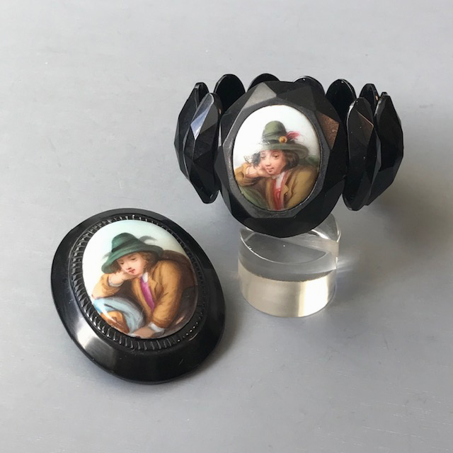 VICTORIAN antique Whitby jet bracelet and brooch set with Tyrolean boy portrait on the front