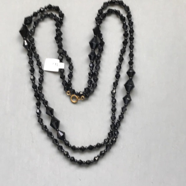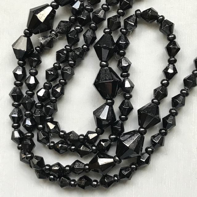 VICTORIAN black glass beads necklace with smaller conical shaped beads and faceted round ones, 40" longProduct #V40662 All items in excellent vintage condition unless otherwise noted.
