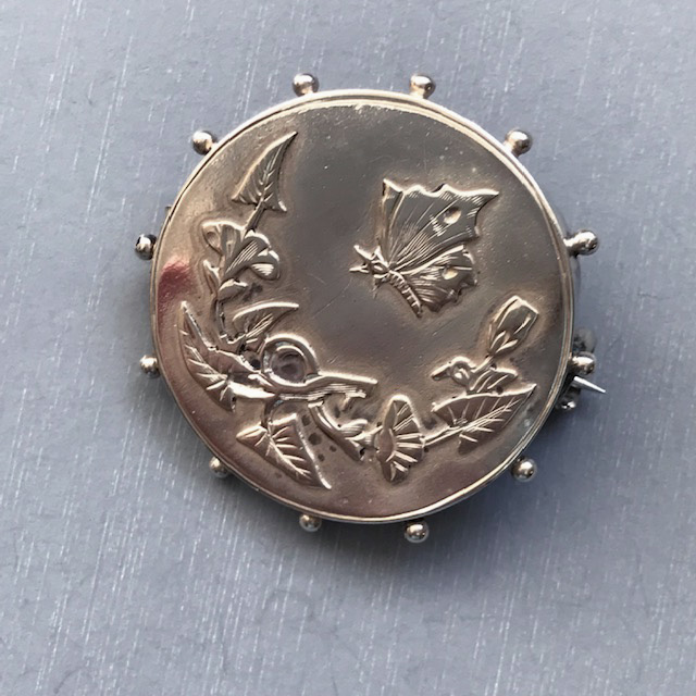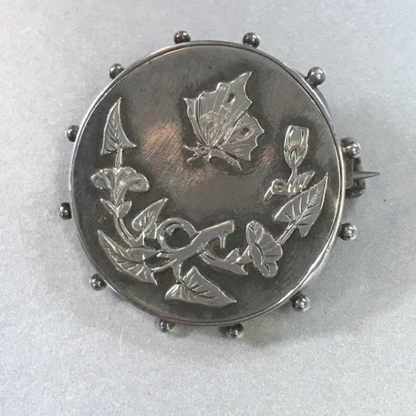 VICTORIAN butterfly sterling silver sweetheart brooch, round with flowers and leavesView View Product #40937 All items in excellent vintage condition unless otherwise noted.