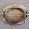 Description VICTORIAN floral locket brooch, and antique sterling silver oval brooch with etched designs of flowers, fruit and leaves and a detailed beaded edge.