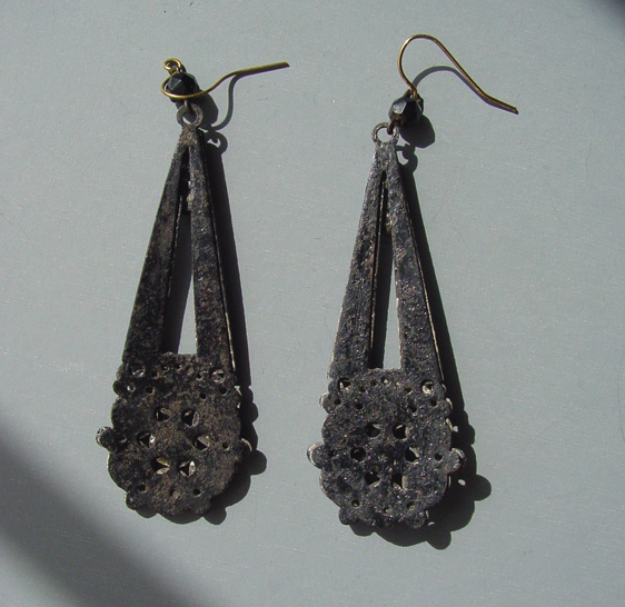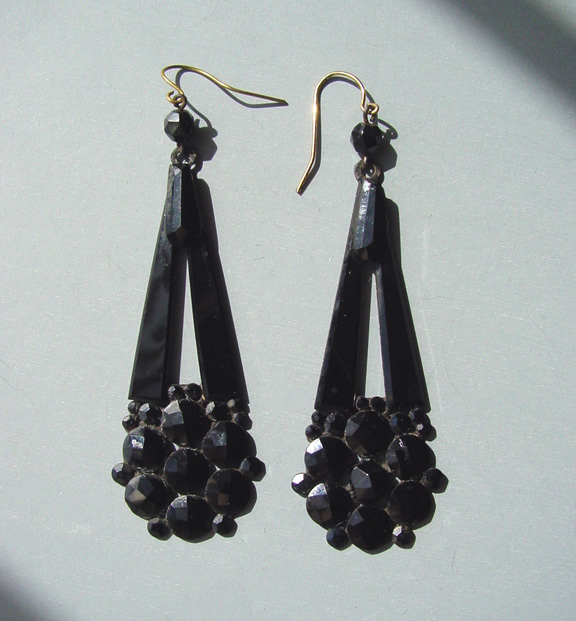 VICTORIAN unusual French jet (black glass) long earringsThese are long, unusual and quite dramatic when worn but they are also delicate so use them with care. View Product #V37485 All items in excellent vintage condition unless otherwise noted.