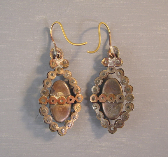 GEORGIAN or early VICTORIAN cut steel and green foiled glass cabochons drop earrings, very oldView Product #37477 All items in excellent vintage condition unless otherwise noted.