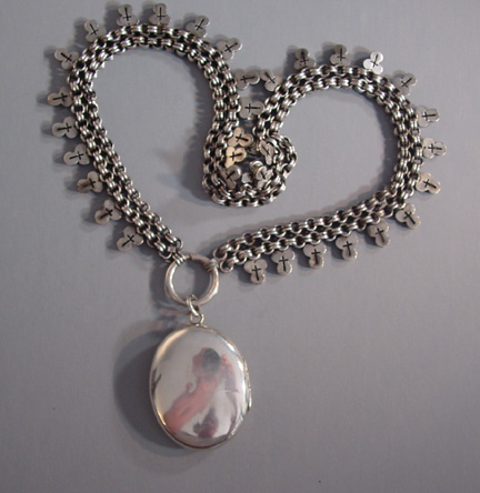 VICTORIAN sterling silver buckle locket trefoil collar circa 1880Product #V36295 All items in excellent vintage condition unless otherwise noted.